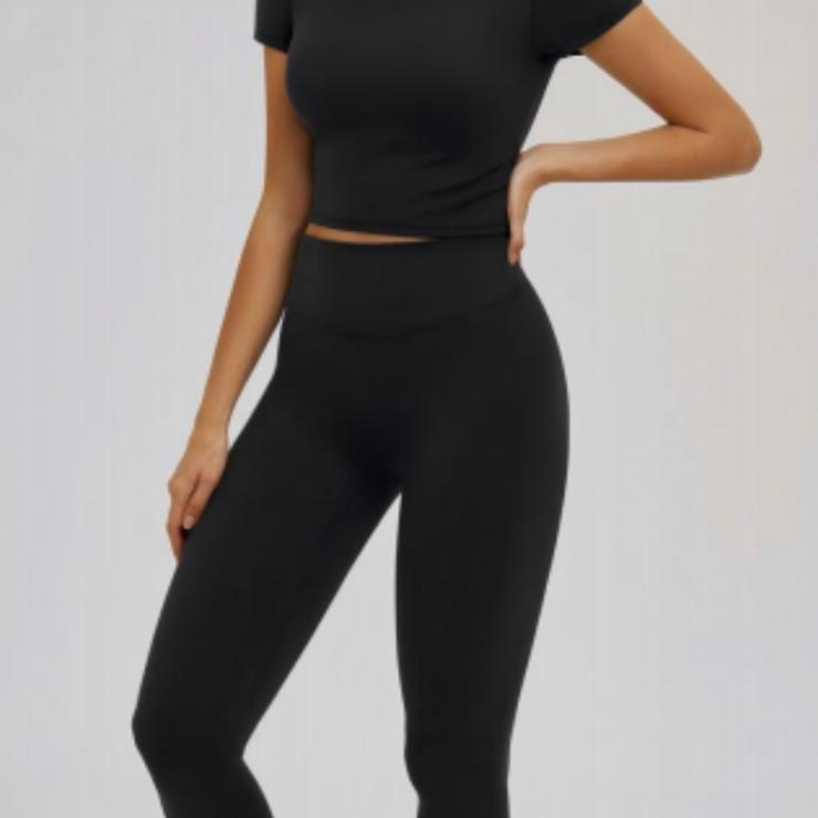 This set features a sleek black crop top paired with matching leggings for a timeless, sculpting look. Items are sold as a set and not separately. Both pieces include a small white Outlaw Pilates logo on the back for a subtle, signature touch.